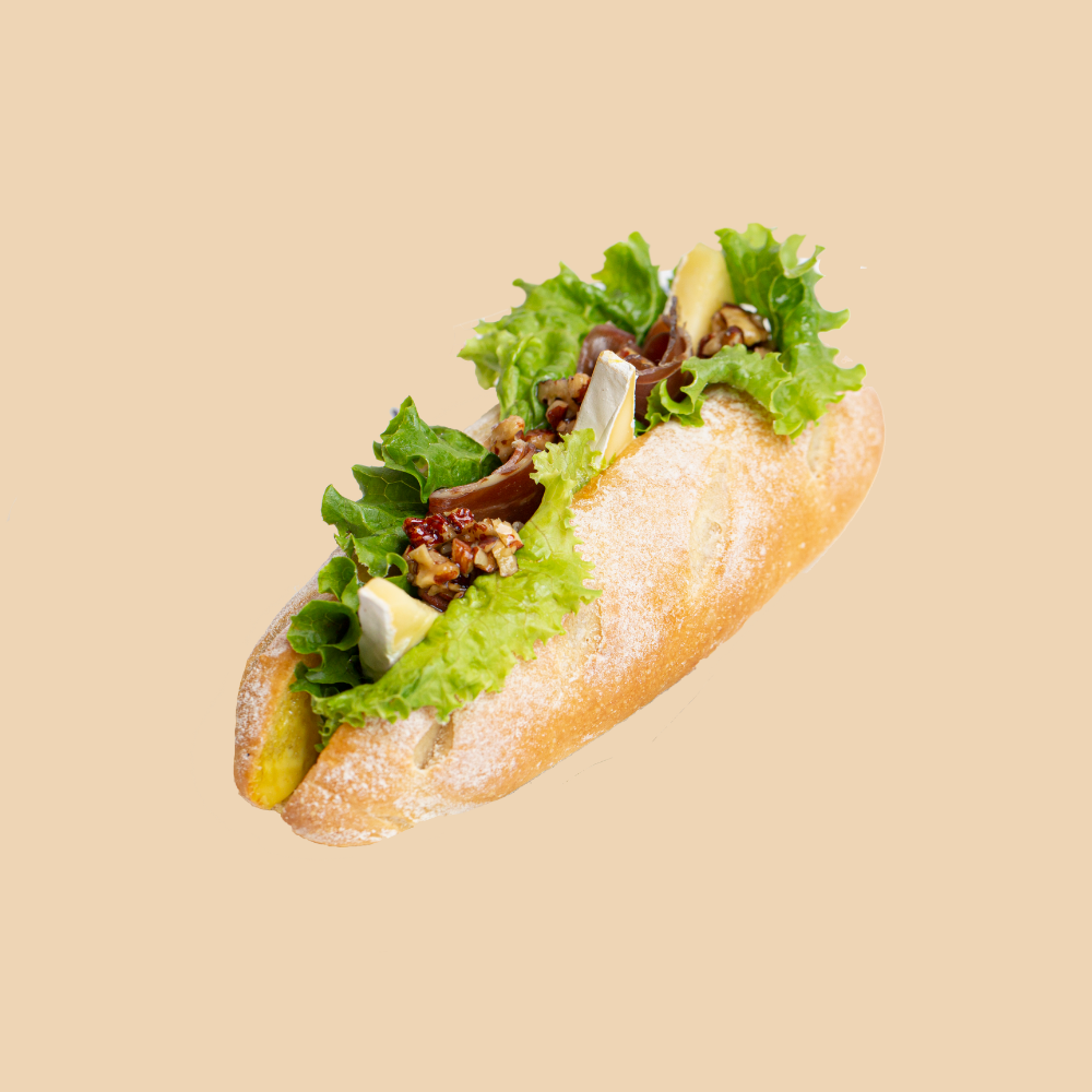 HomeSandwichesEmpanadasSándwich De Queso BrieSándwich De Queso Brie Tipo de Pan: Focaccia Relleno: Queso Brie, jamón serrano, nueces pecanas con miel, mayo-mostaza, lechuga. Related products Sándwich Alemán Read more Sándwich De Pollo Read more Sándwich Caprese Read more